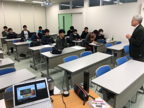 1月21日に福島工業高等専門学校(福島高専)で産業技術論”建設コンサルタント”のテーマで社長が講義を行いました。全学科の専攻科1年生(大学3年生)約30名が受講しました。
