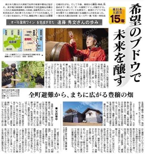 株式会社ふたばお知らせメディア情報【公明新聞】とみおかワイナリーをご紹介いただきました。 2026.3.10 メディア情報 【公明新聞】とみおかワイナリーをご紹介いただきました。 3月10日(火)の公明新聞にて、弊社遠藤が代表を務めるとみおかワイナリーの記事が掲載されました。 是非、ご一読ください。 お知らせ一覧へ 前へ